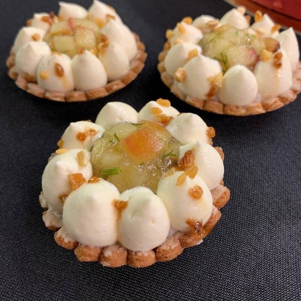 Tartelette au sarrasin, crème de citron au shiso et confit d'agrumes